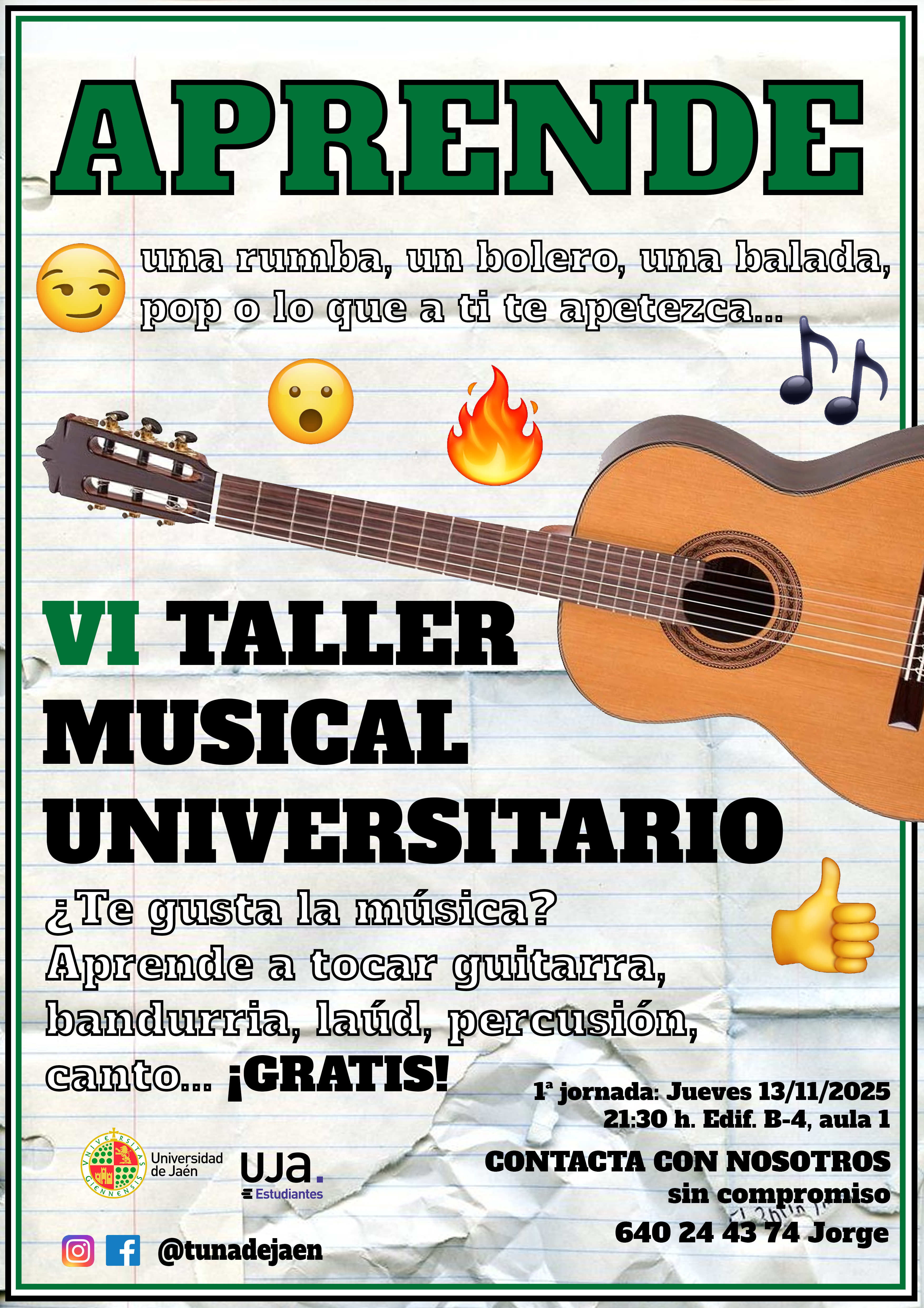 El próximo jueves 13 de noviembre comienza el VI "Taller Musical Universitario" a las 21:30 en el aula 1 del edificio B-4.